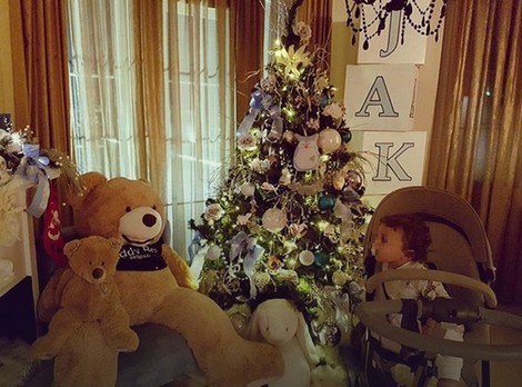 Mali Jakov oduševljeno je posmatrao igračke oko božićnog drveta, a evidentno je da su se pevačica i njen suprug Veljko Piljikić potrudili oko dekoracije kuće.